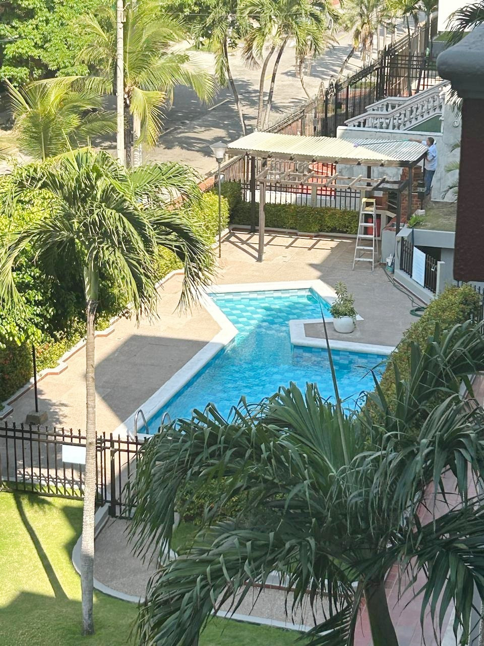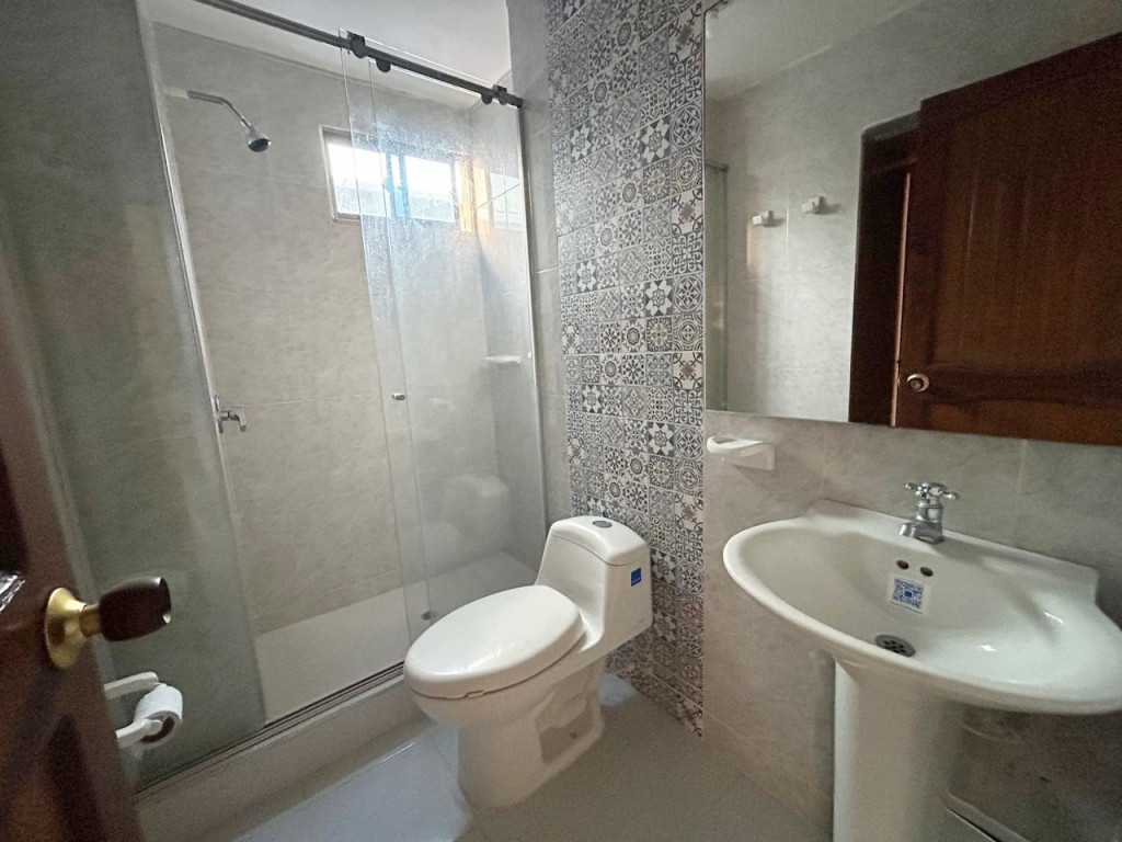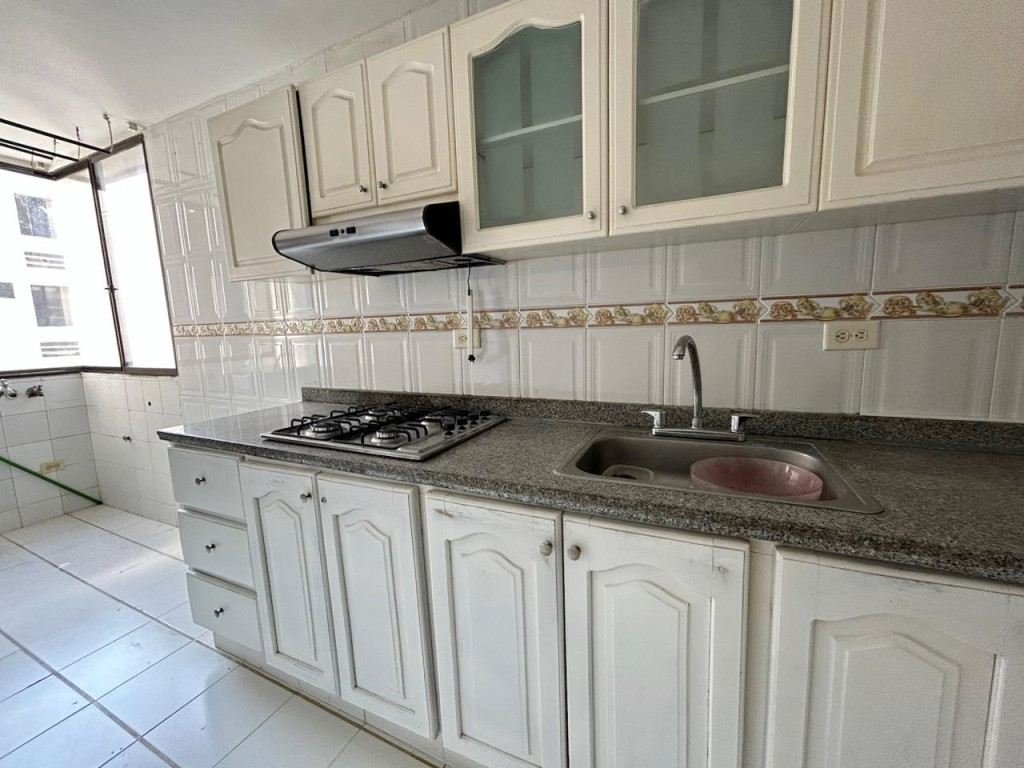 Apartamento con un area de 100.92 m2, consta de sala amplia, comedor, pisos en granito, cocina integral, hall de alcobas, tres alcobas, dos baños, edificio cuenta con portería, piscina, parqueadero de visitantes. No tiene ascensor.