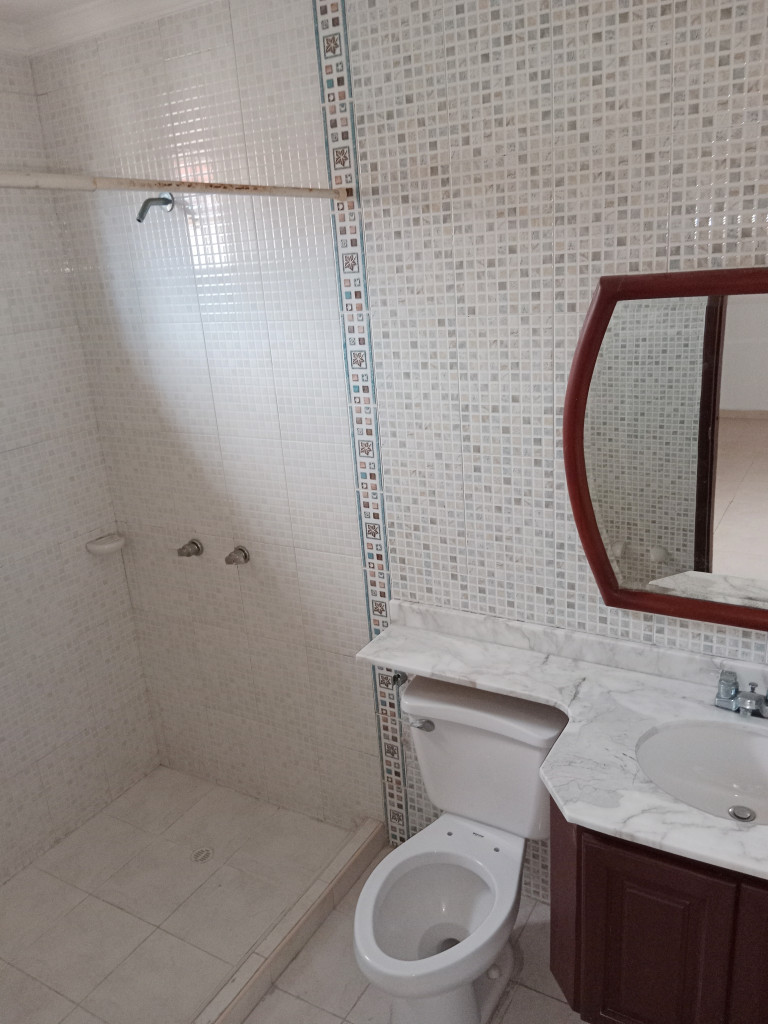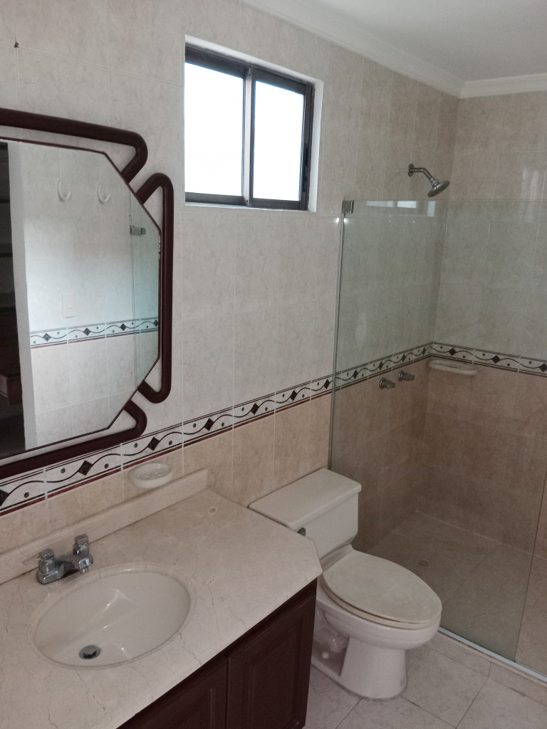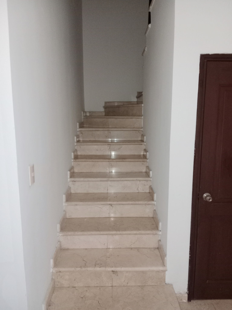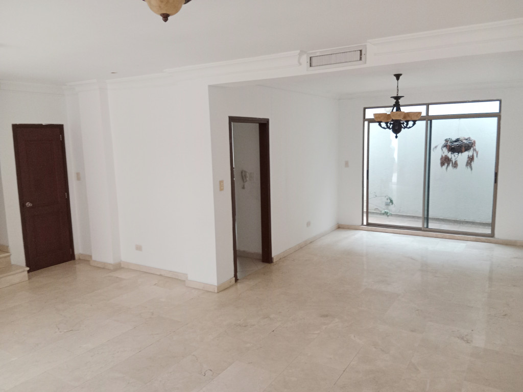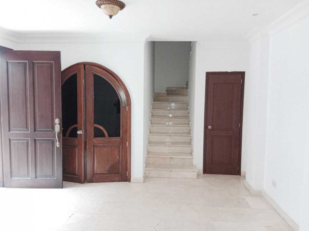 Casa conjunto de dos niveles de 150 m2, consta de sala de estar, sala, comedor, baño social, estudio, cocina integral, zona de labores, cuarto y baño de servicio, patio pequeño, tres habitaciones, principal con baño interno, vestier y balcón, habitaciones auxiliares con closets, baño auxiliar, pisos en mármol primer piso y cerámica, celaduría 24 horas, dos garajes cubiertos.