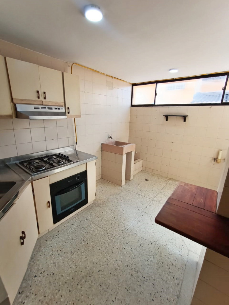 Apartamento en buen estado, de 115 metros aproximadamente, consta de sala, comedor, cocina tradicional, zona de labores, cuarto y baño de servicio, tres habitaciones, dos baños (Un baño auxiliar y un baño principal), closets, garaje cubierto. Edificio con portería, No tiene ascensor.