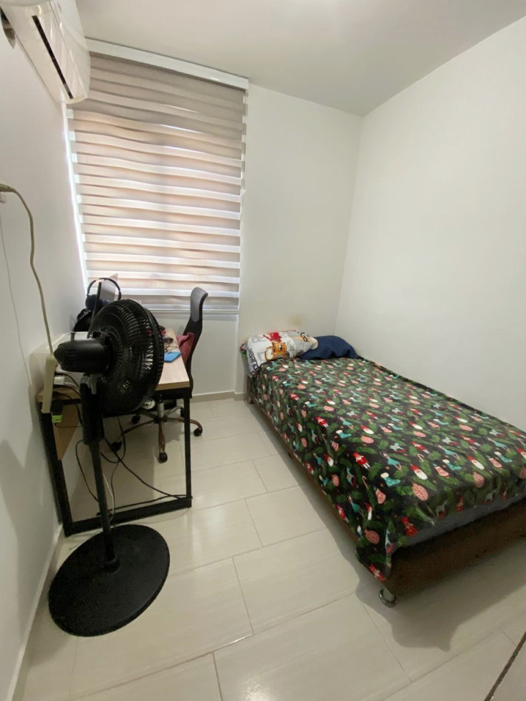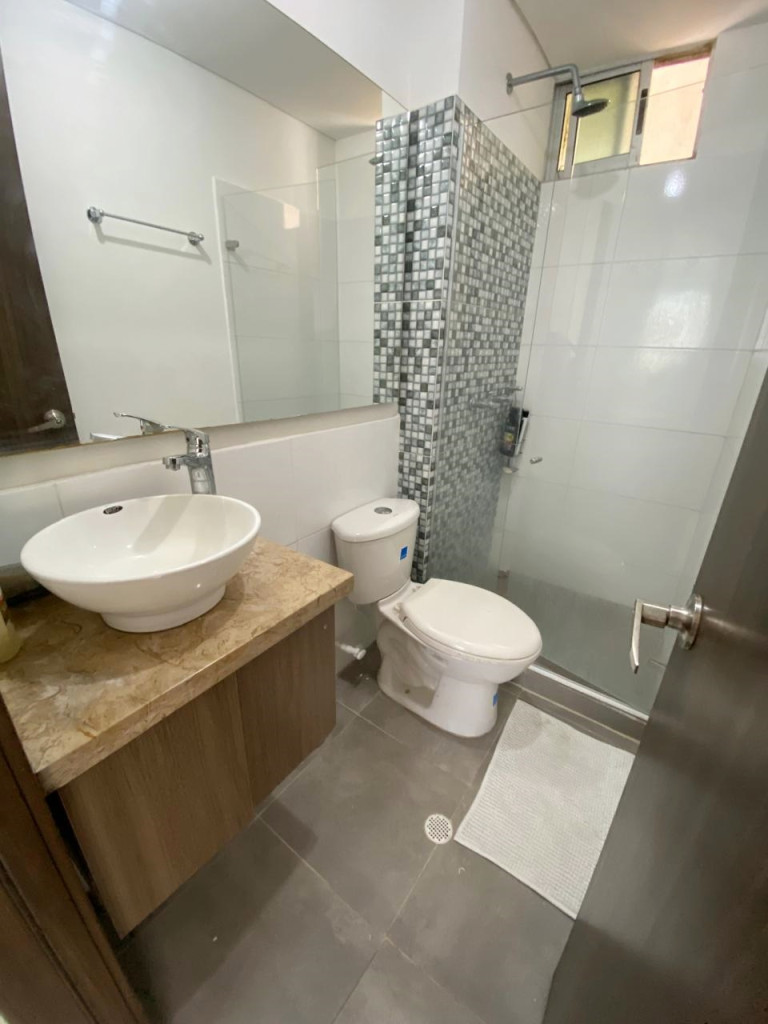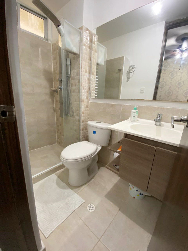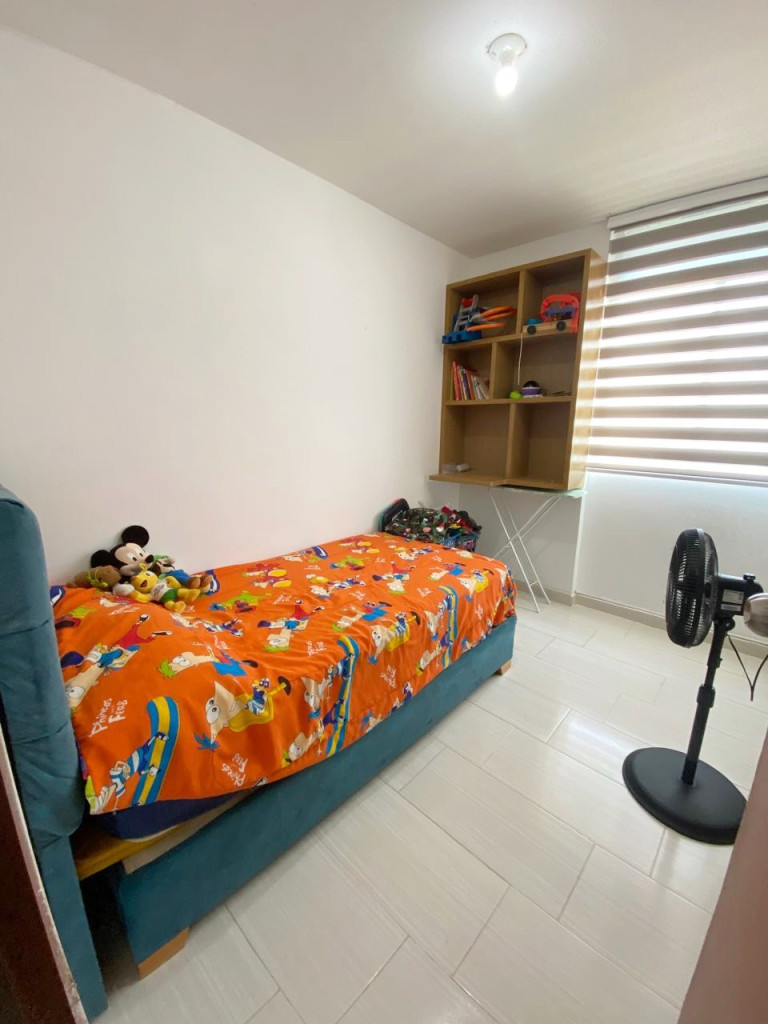 Apartamento lado sombra de 66 m2, consta de sala, comedor, baño social, cocina integral, area de labores, hall de alcobas, tres alcobas con sus closets, la principal con baño interno, baño auxiliar, un parqueadero cubierto. Conjunto con vigilancia 24/7, ascensor, piscina cancha deportiva, parque infantil y salón social.