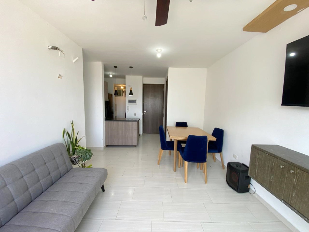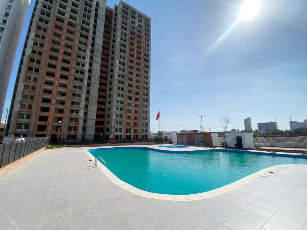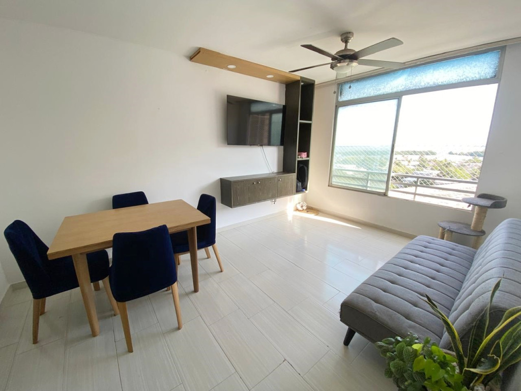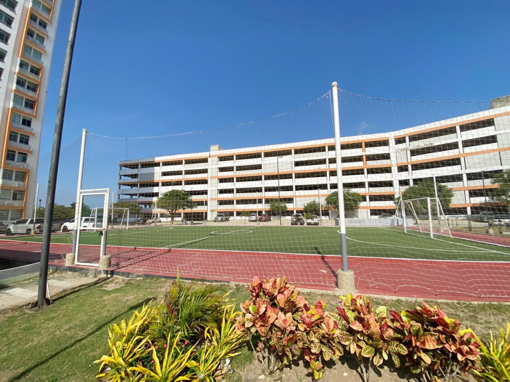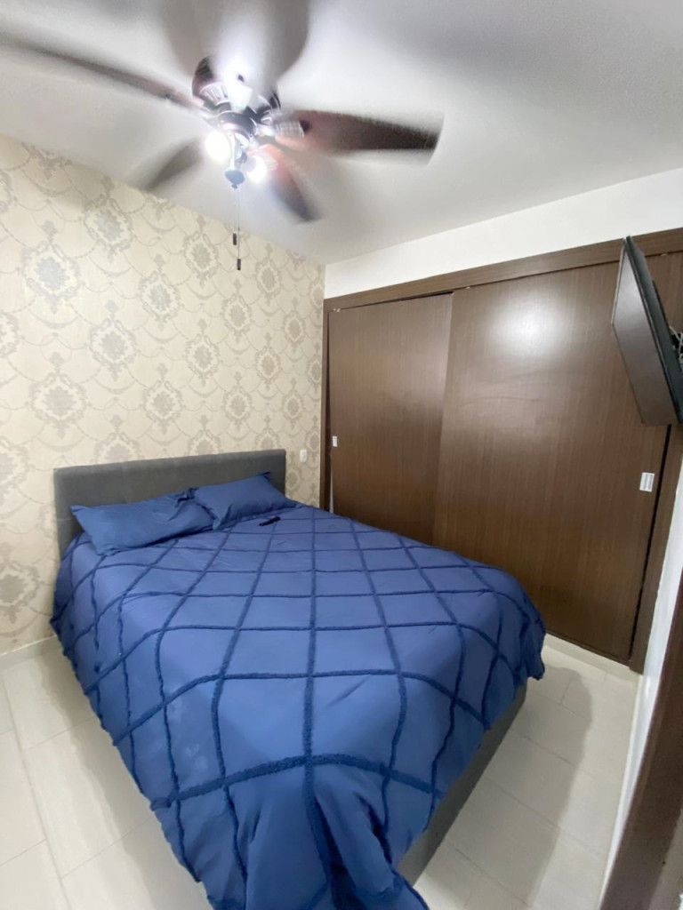 Apartamento lado sombra de 66 m2, consta de sala, comedor, baño social, cocina integral, area de labores, hall de alcobas, tres alcobas con sus closets, la principal con baño interno, baño auxiliar, un parqueadero cubierto. Conjunto con vigilancia 24/7, ascensor, piscina cancha deportiva, parque infantil y salón social.