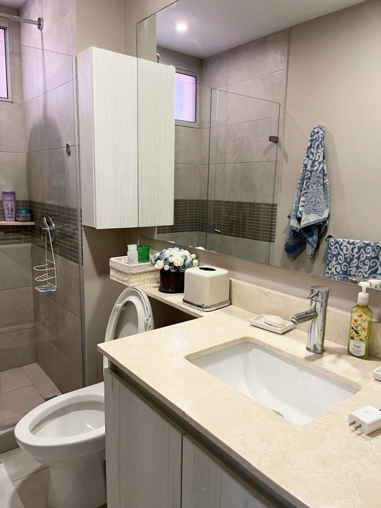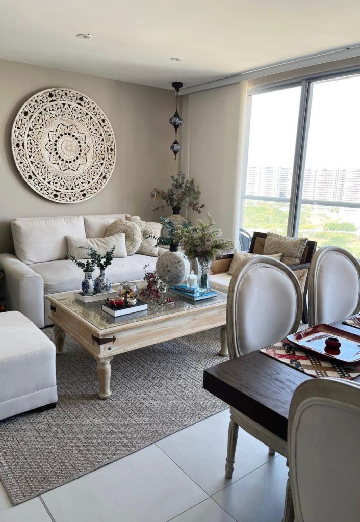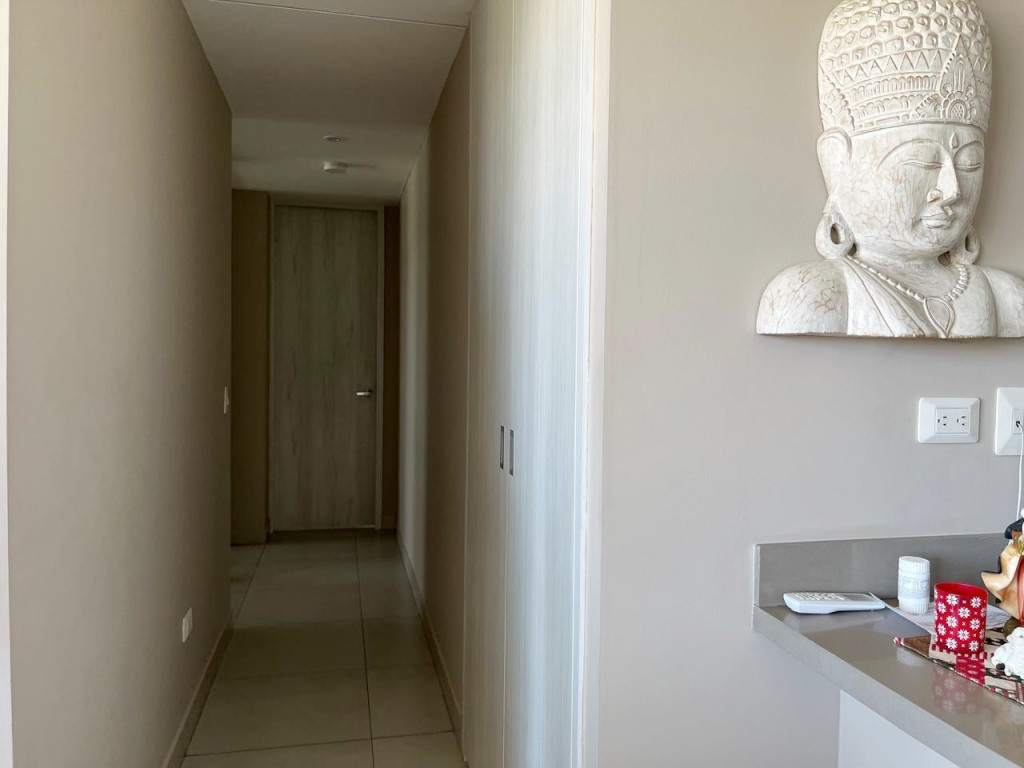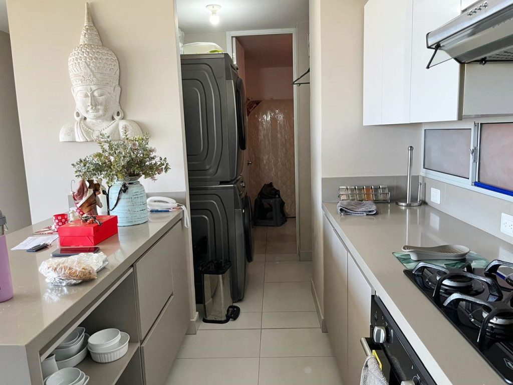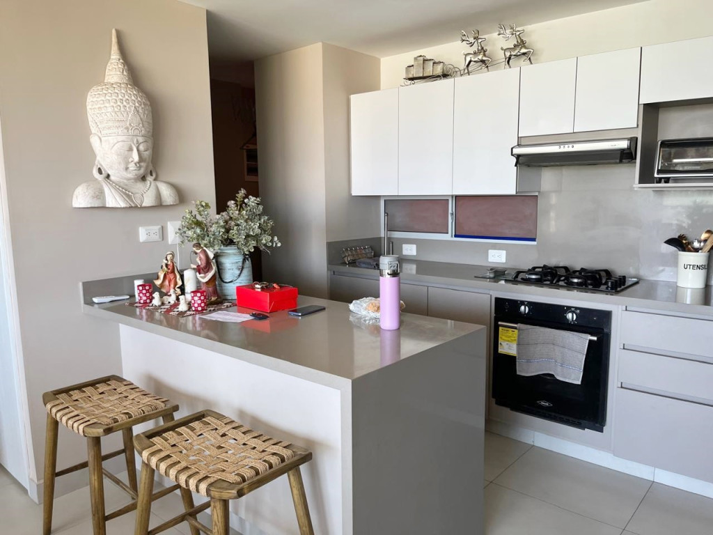 Confortable apartamento de 122 M2 ubicado en lado sombra, consta de sala comedor, balcón, tres habitaciones cada una con baño privado, baño social, cocina integral, cuarto y baño de servicio, y área de labores; cuenta con dos parqueaderos y depósito. El conjunto residencial dispone de completas zonas sociales: planta eléctrica, piscina, zona de juegos infantiles, zona BBQ, salón social, sauna, baño turco, parqueadero de visitantes. Ubicado en Portal de Genovés.
