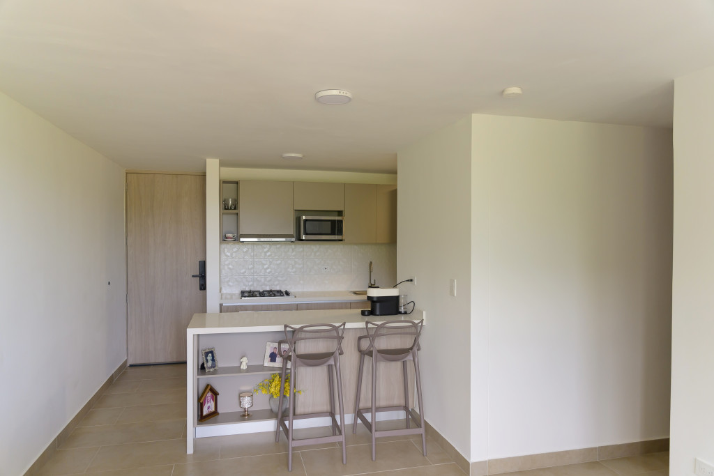 Acogedor apartamento de 76 m². Cuenta con dos habitaciones, cada una con baño privado. La habitación principal dispone de vestier, cocina integral abierta que conecta con la sala-comedor y el balcón, baño social. Lado sombra. Un parqueadero. Estrato 4. El edificio ofrece amenidades: Piscina para adultos y niños, jacuzzi, club house, gimnasio, salon social, coworking, Zona BBQ y horno de pizza, Parque para perros, Jardines y mirador. Además, cuenta con planta eléctrica de suplencia total y 4 ascensores (2 por torre), lo que garantiza comodidad y eficiencia en el acceso.