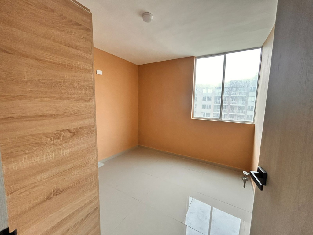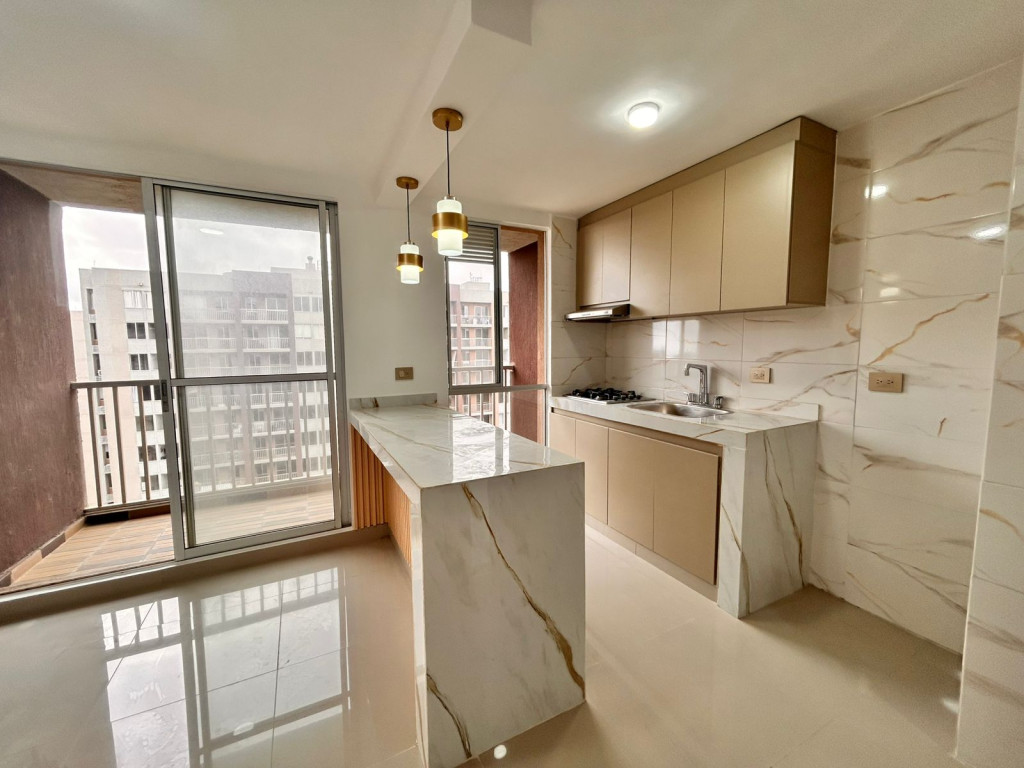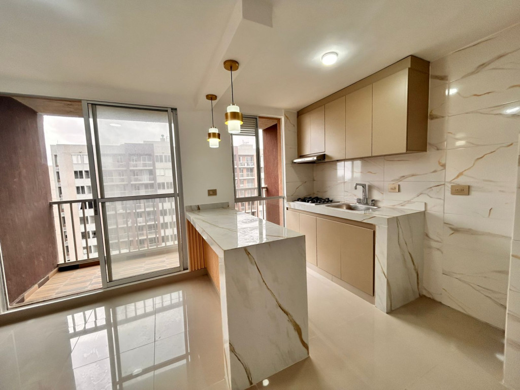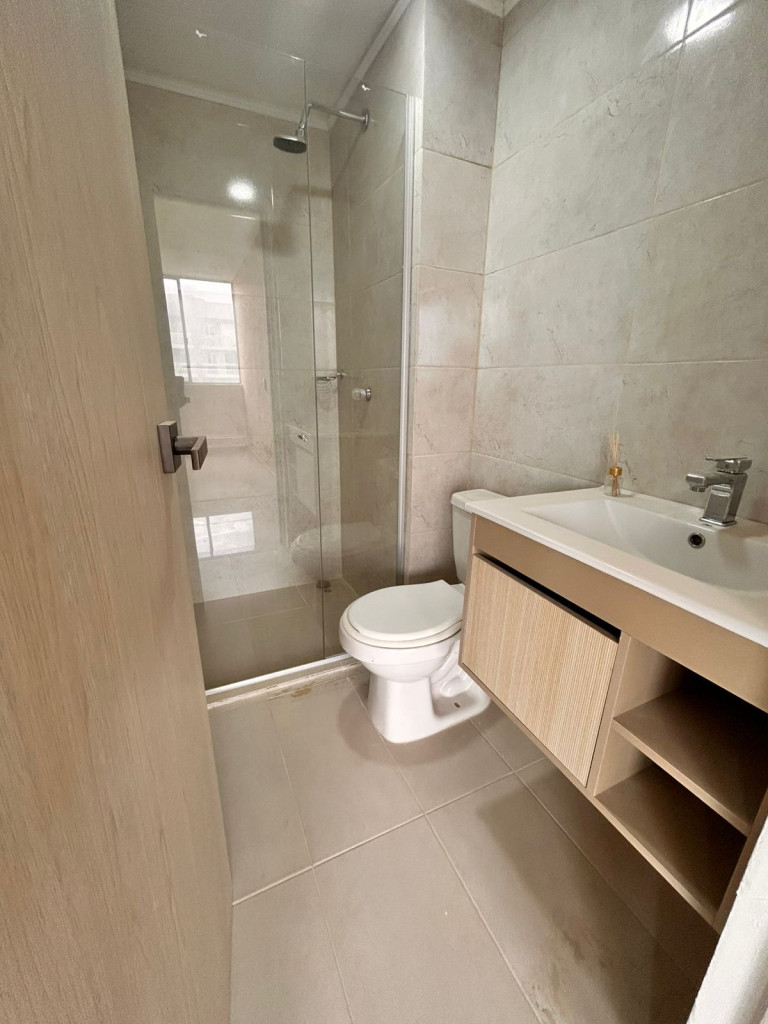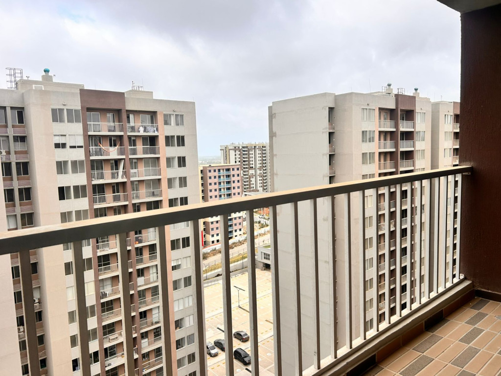 Apartamento para estrenar en conjunto residencial, con control de acceso y vigilancia. Presenta acabados modernos y distribución funcional. Cuenta con sala-comedor de concepto abierto, cocina integral con pantry y zona de labores independiente. Dispone de dos habitaciones: alcoba principal con baño privado y una habitación auxiliar. Baños con divisiones en vidrio. Incluye balcón amplio. Ubicado en piso 16, con iluminación natural y ventilación constante.